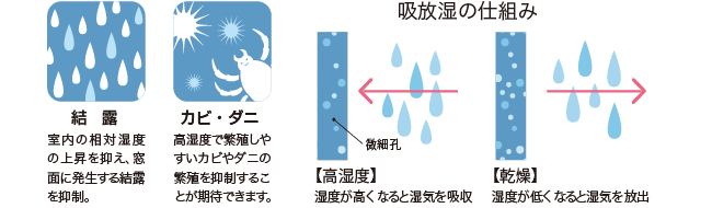 ジメジメ、冬の過乾燥や結露を軽減します。